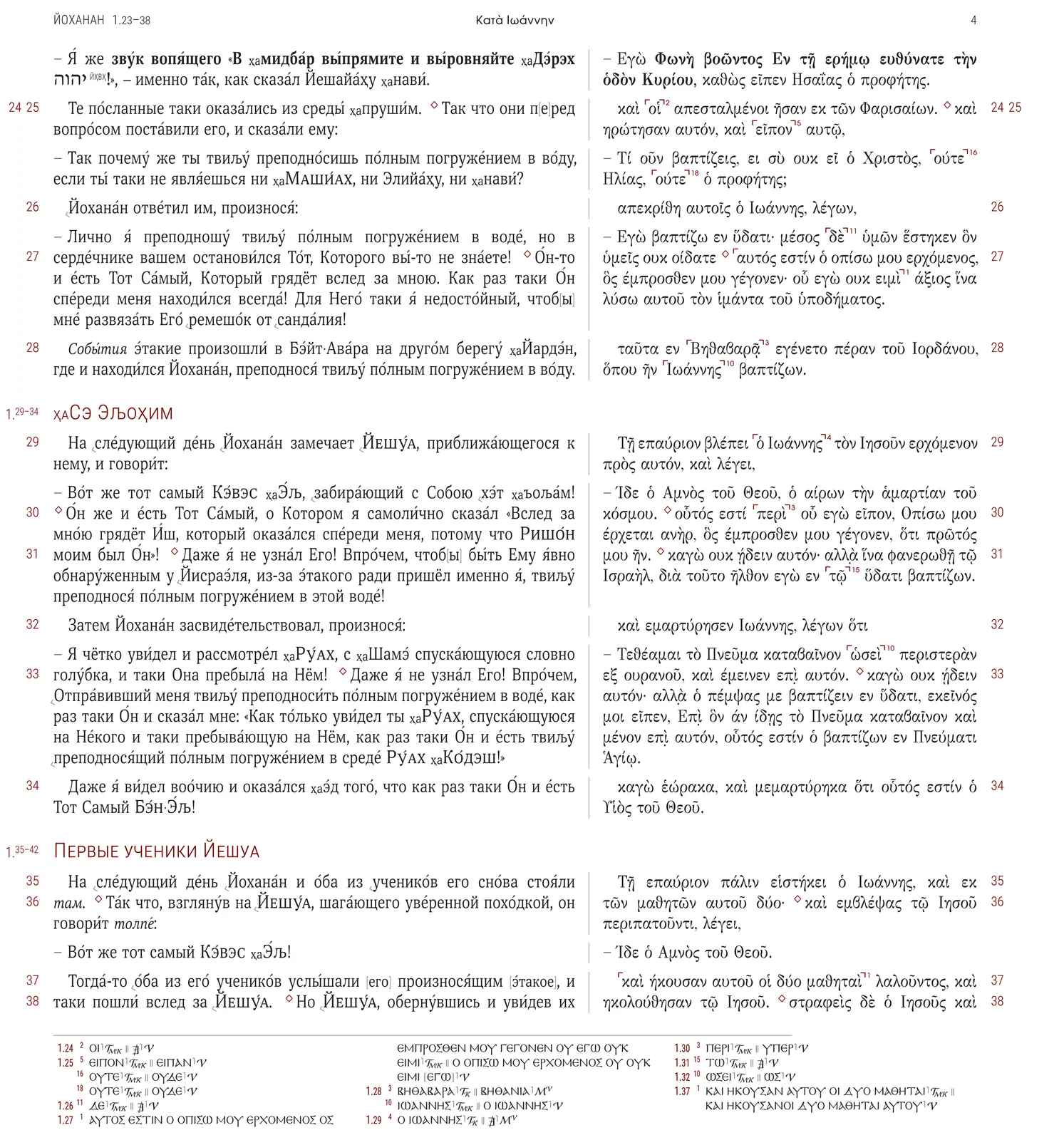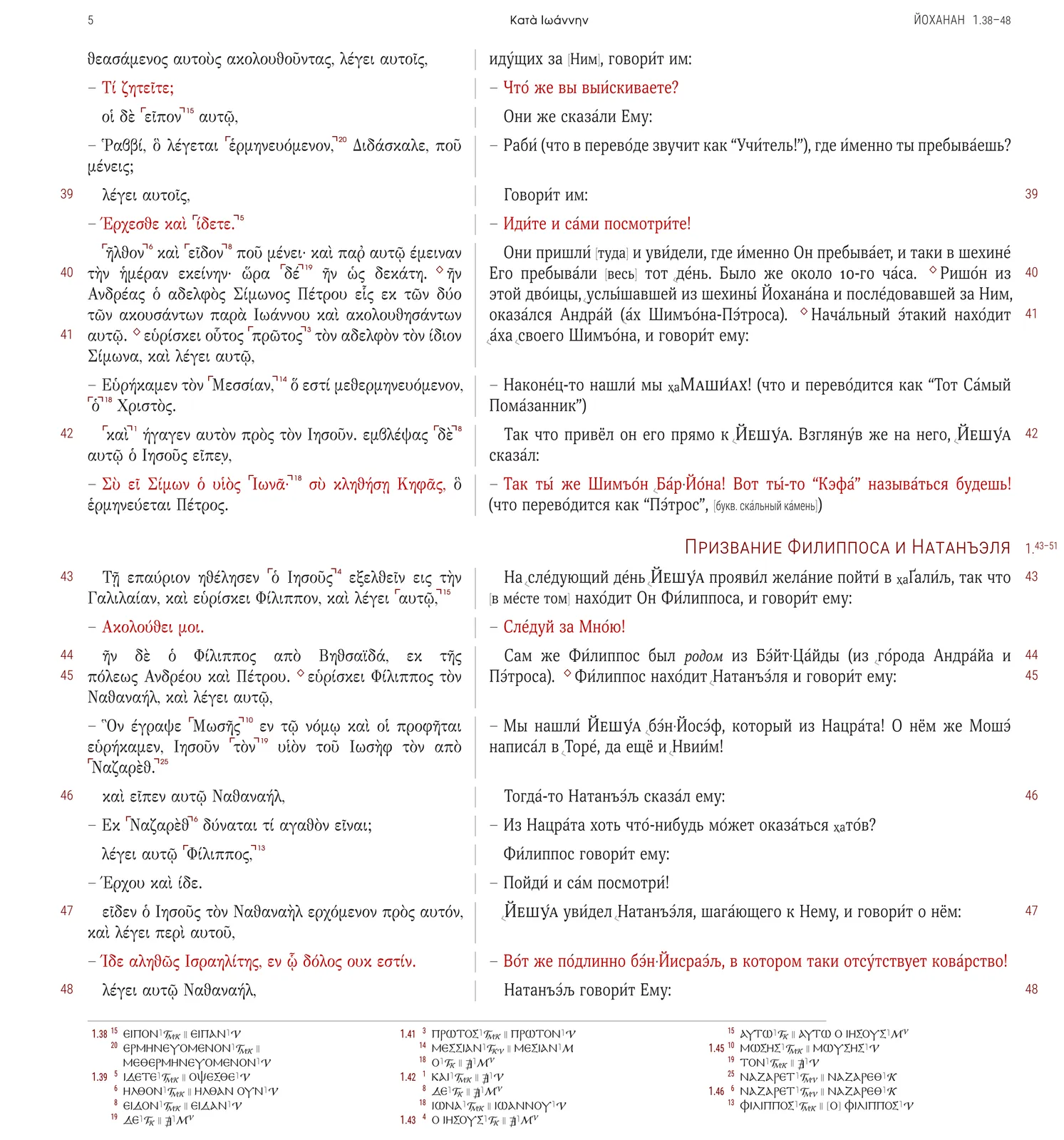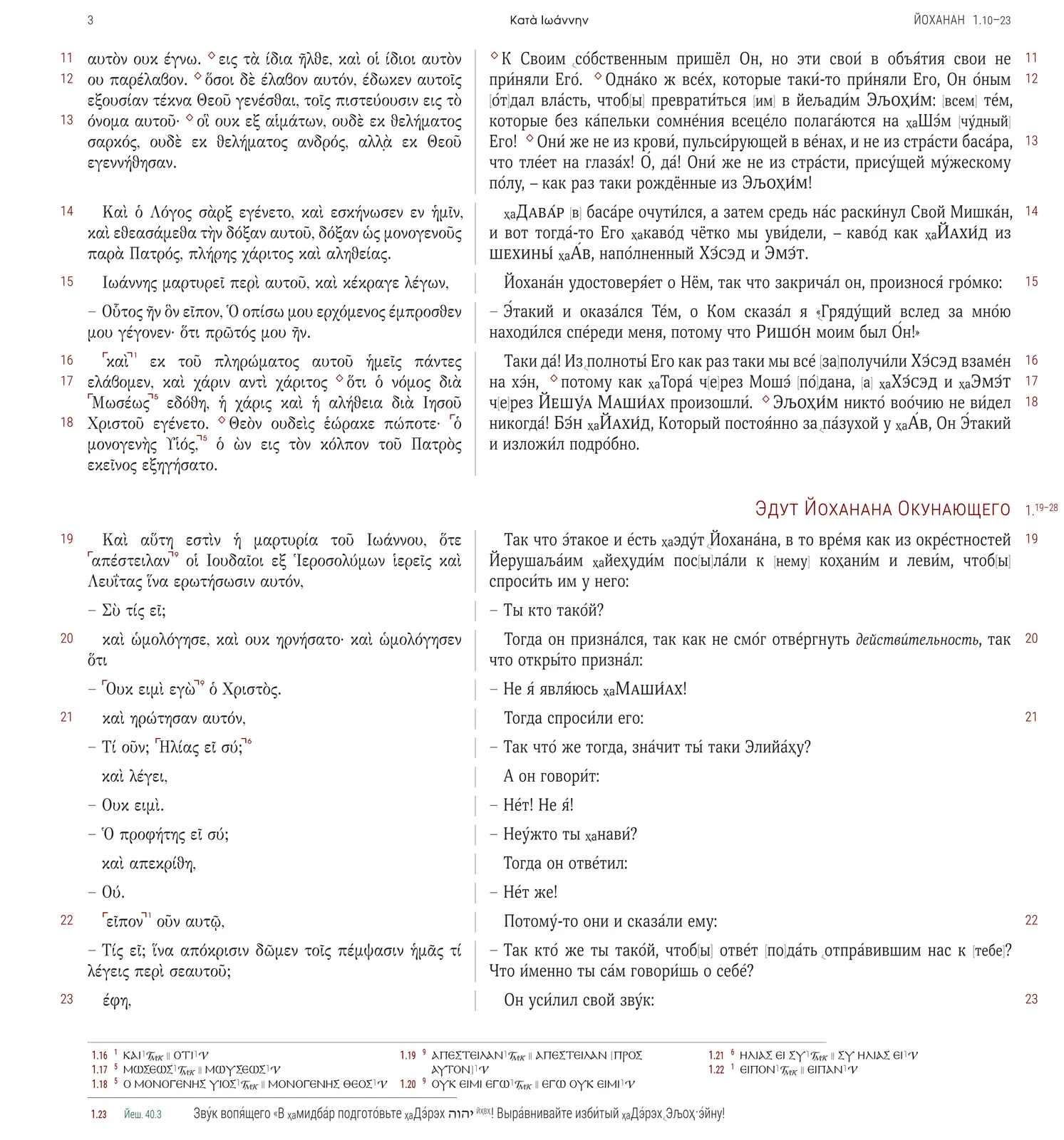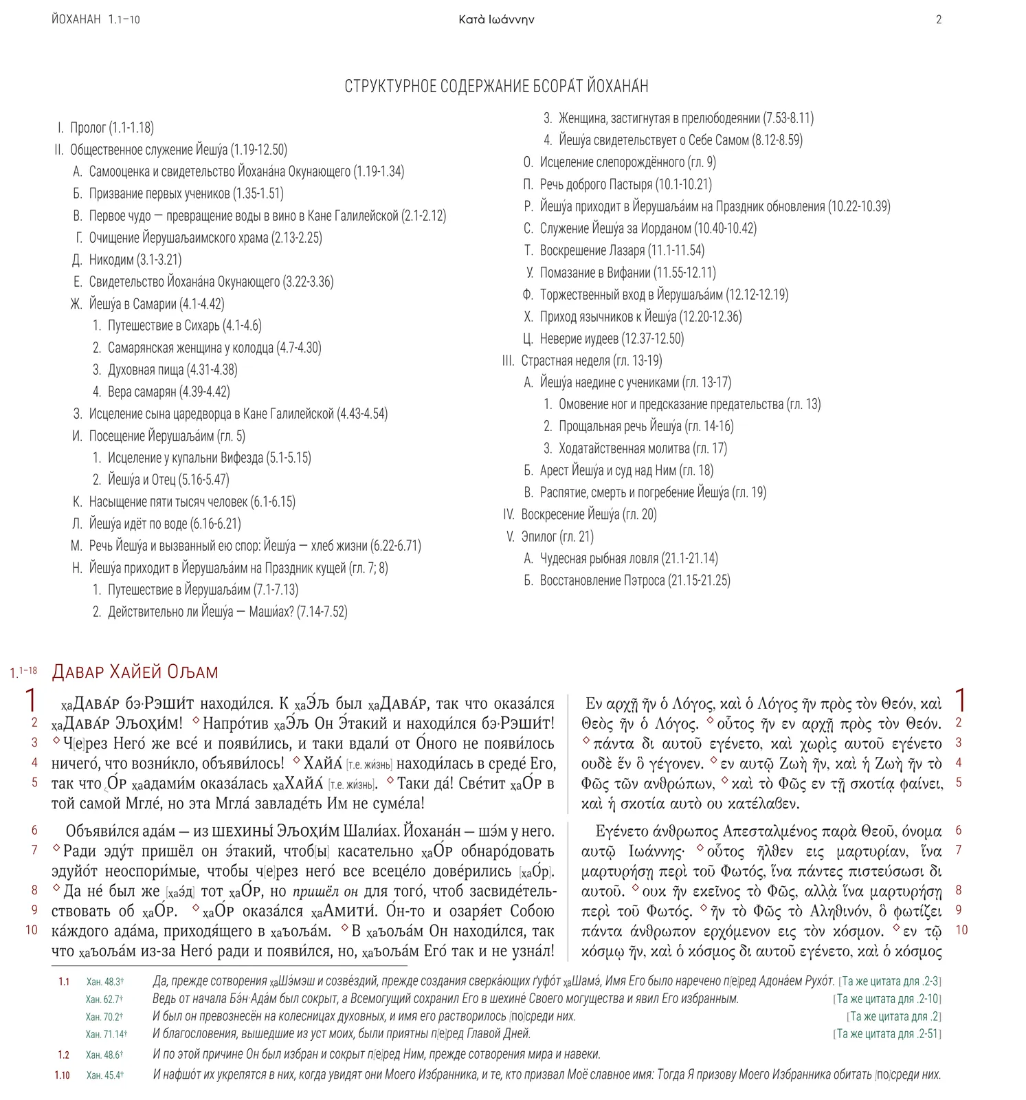 В книге присутствует как Дословно-Смысловой Перевод (LCV’20h), так и Принятый Текст Нового Завета, критический аппарат с разночтениями в греческом тексте, текст параллельных цитат и аллюзий на ТаНаХ (Ветхий Завет). В книге Дидахе так же имеется критический аппарат с разночтения на другие рукописи Дидахе.