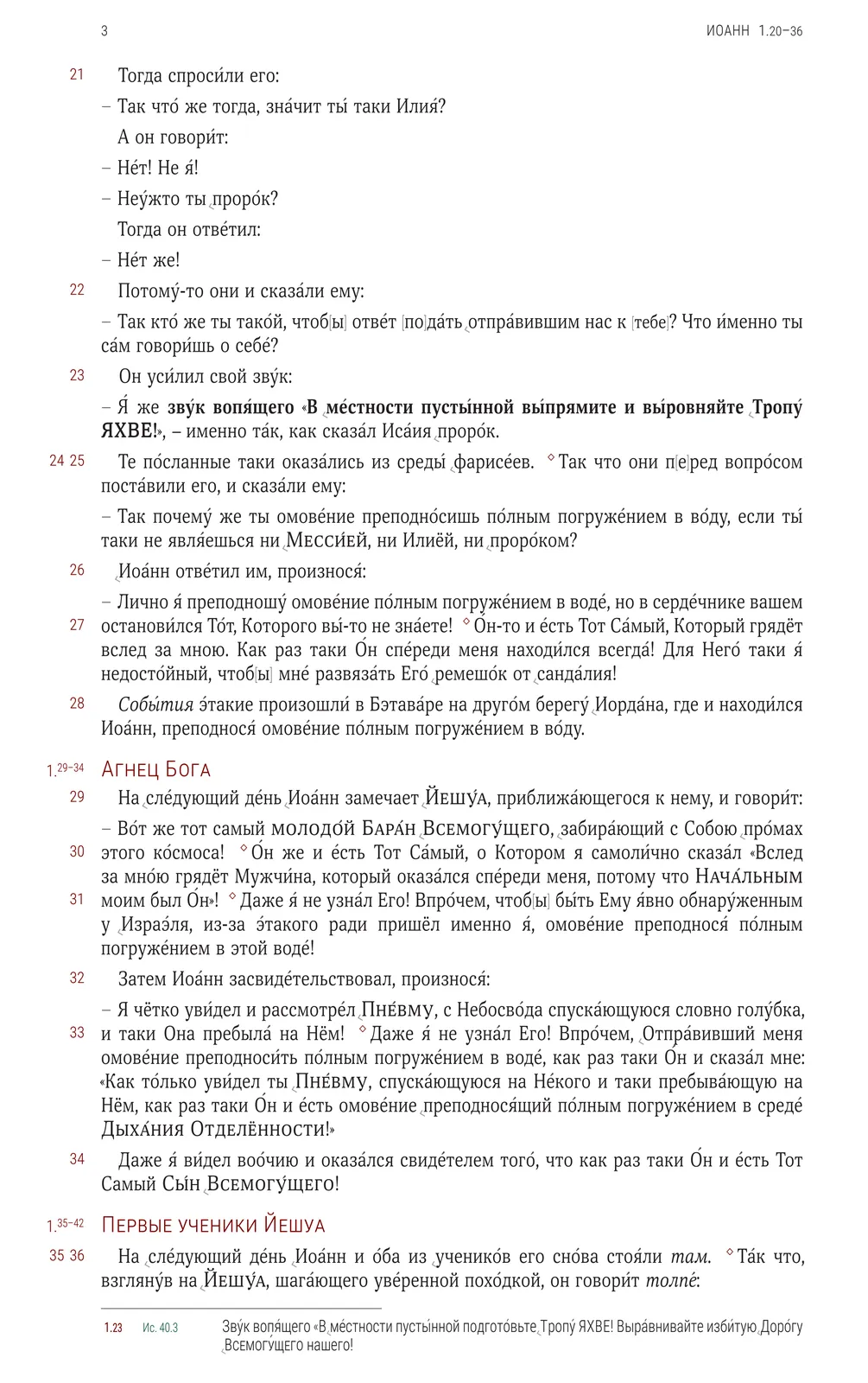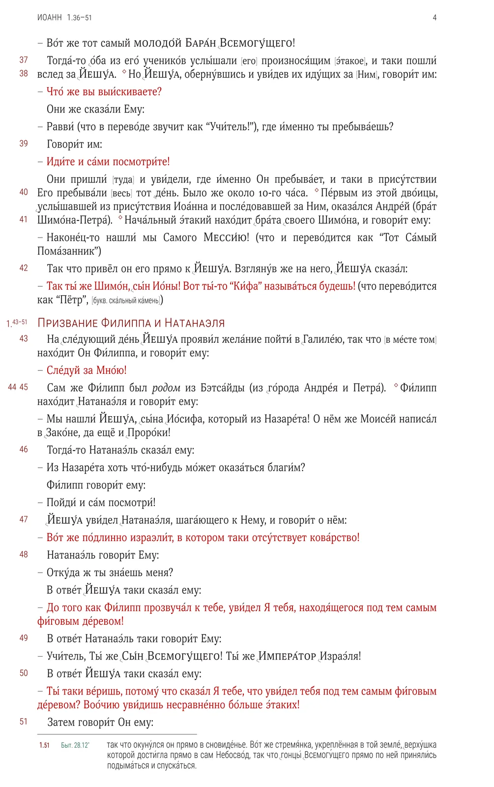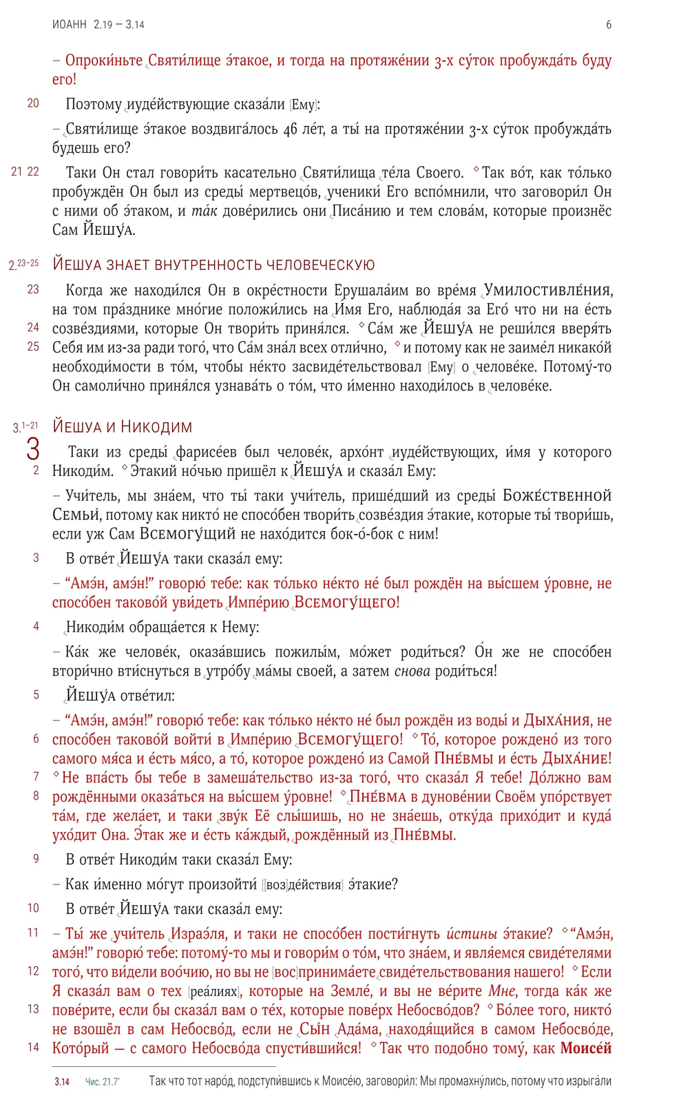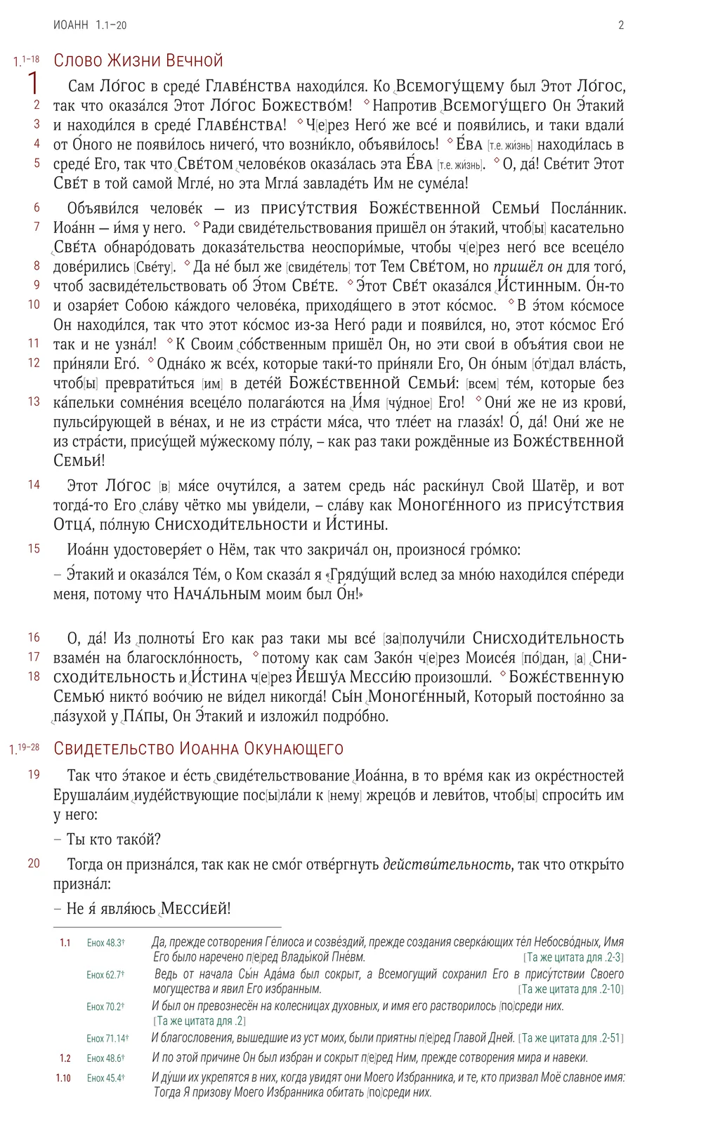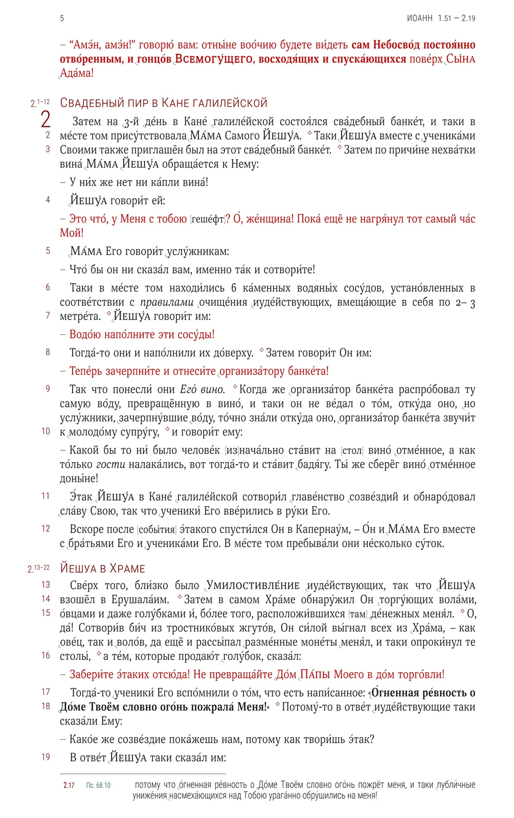 В книге отсутствует параллельный русскому греческий текст, но присутствует лишь Дословно-Смысловой Перевод (LCV’20r), а также текст параллельных цитат и аллюзий на ТаНаХ (Ветхий Завет).